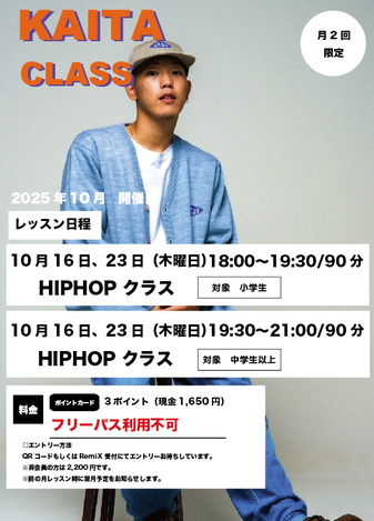 19:30~21:00 HIPHOPクラス 対象 中学生以上